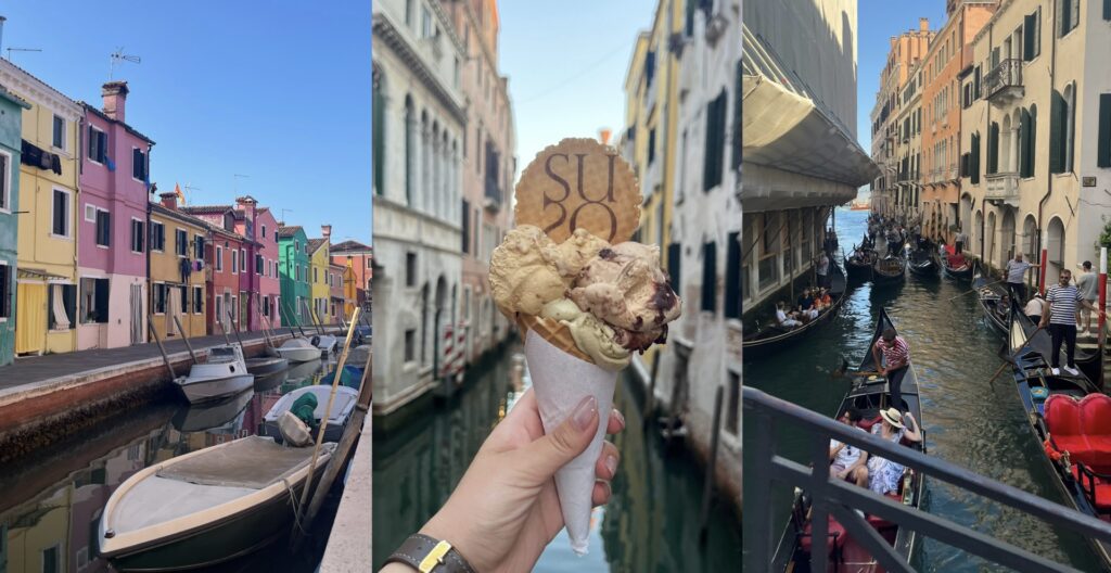 カラフルなブラーノ島、ガラス細工で有名なムラーノ島を巡って、最後は念願のゴンドラに乗船♡